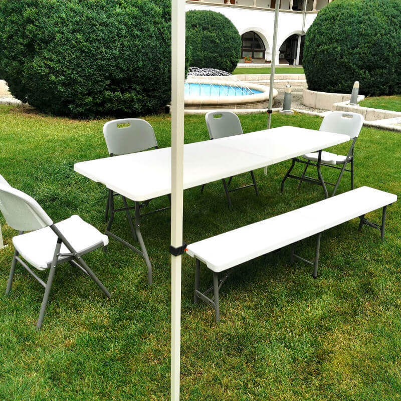 Mažos vietos poreikis sandėliavimui ar transportavimui leidžia geriau organizuoti vestuves, sodo šventes ar visuomeninius renginius. Plastikiniai sulankstomi suolai yra pagaminti iš aukštos kokybės medžiagų, atsparių mechaniniams pažeidimams, UV spinduliams, vandeniui ir drėgmei. Su minimalia priežiūra užtikrins ilgalaikį kokybišką ir estetišką sprendimą.